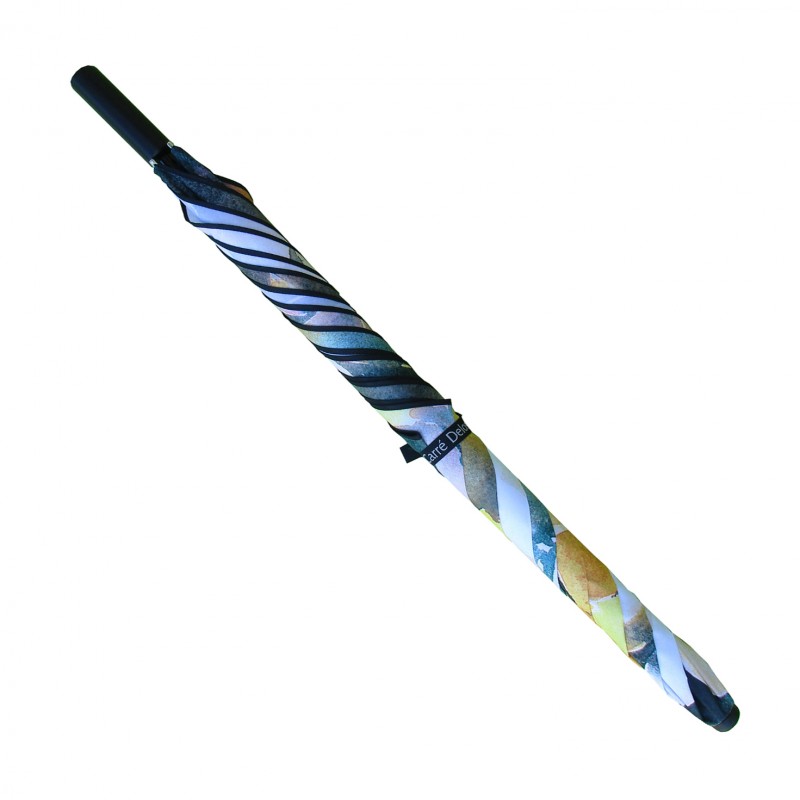 Le parapluie Carré Delos est un parapluie entièrement modulable, il se démonte rapidement, sans outillage particulier. A partir d'une monture de base, la couverture (d'une seul pièce et sans couture), la poignée ou le mât peuvent être changés de façon indépendante. Le Carré Delos est le seul parapluie réparable par le client en quelques secondes.